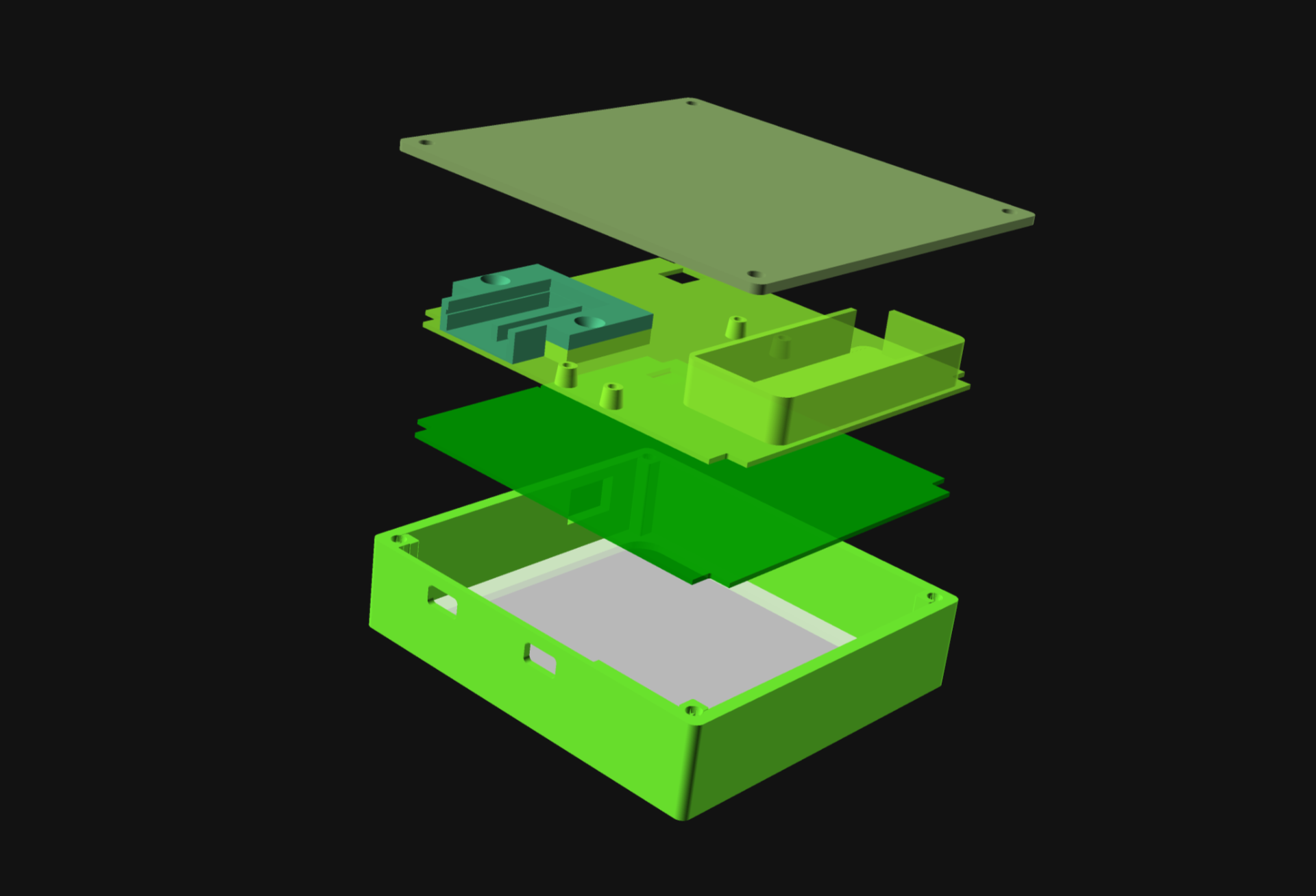 I designed five parts that were then 3D printed, and added in a thin sheet of 0.04″ thick PET plastic.